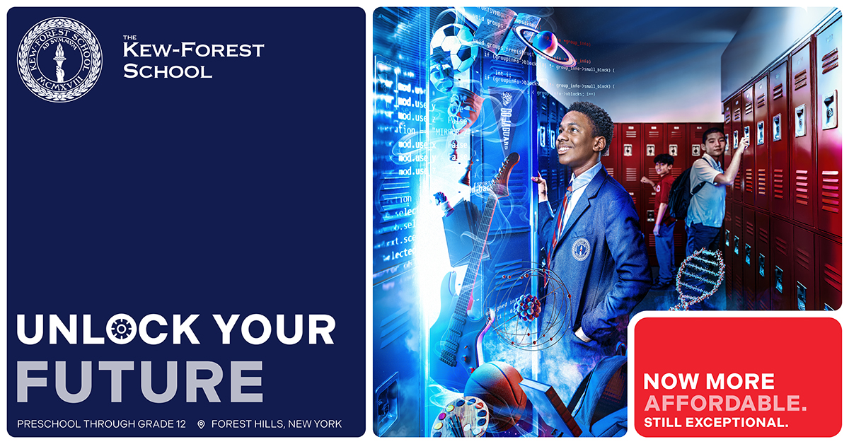 Big News! Now more affordable. Still exceptional. The Kew-Forest School (Preschool – Grade 12) in Queens has reset tuition (33% reduction) to make premier independent education accessible to more families. Since 1918, their program has helped students unlock their potential through small classes, a nurturing environment, and a challenging, inquiry-based curriculum.