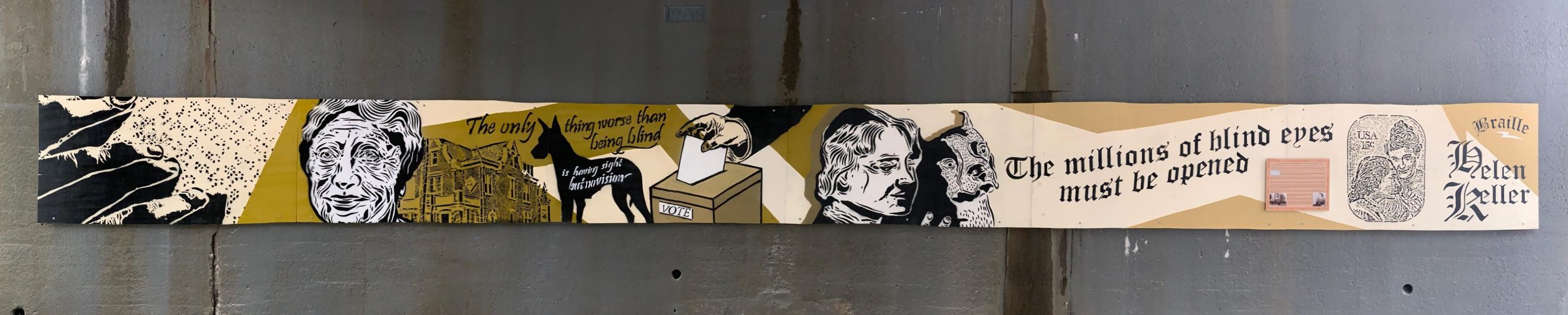 Helen Keller lesson plan featuring Helen Keller Forest Hills Tribute mural & plaque, December 2025 photo by David Edelman.