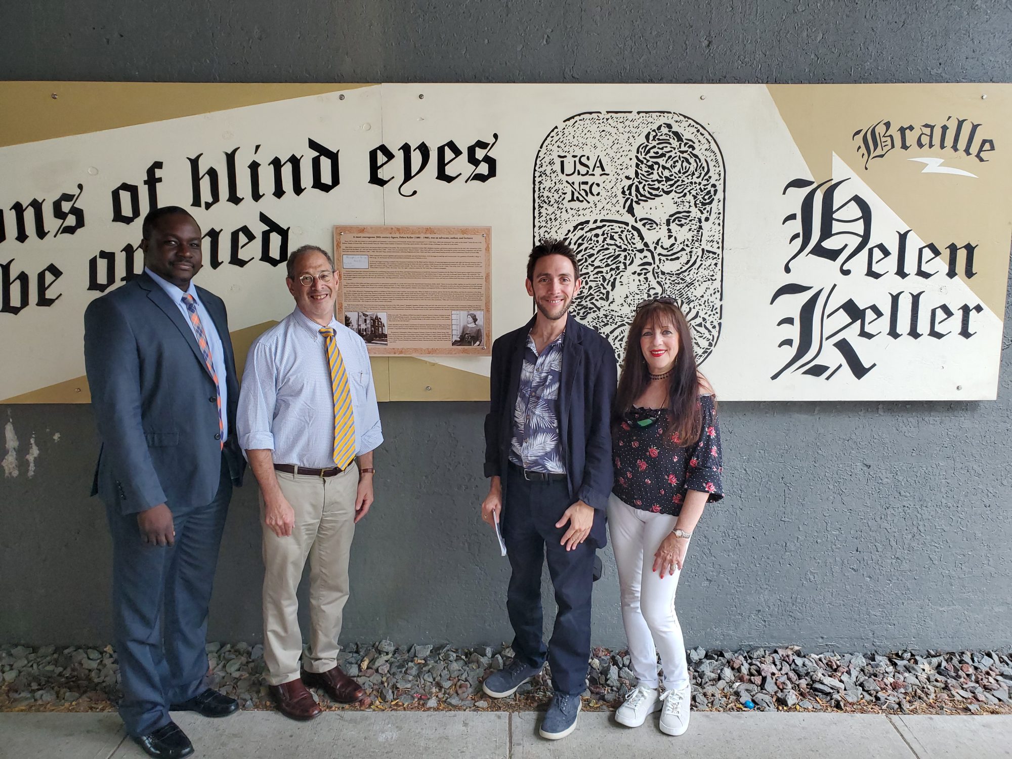 Helen Keller mural with Richard Calixte, Seth Bornstein, Michael Perlman, Linda Perlman, Photo by Rob MacKay, 2019.