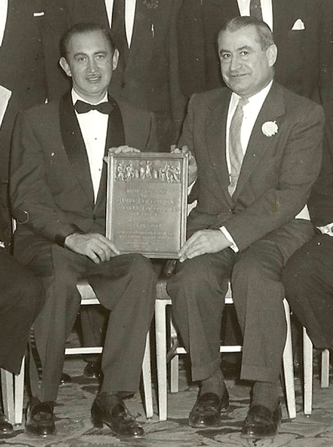 Alfred Kaskel & Philip Birnbaum, 1st prize plaque by Queens Chamber of Commerce for the Metropolitan Industrial Bank Building, Dec 1952 awards dinner