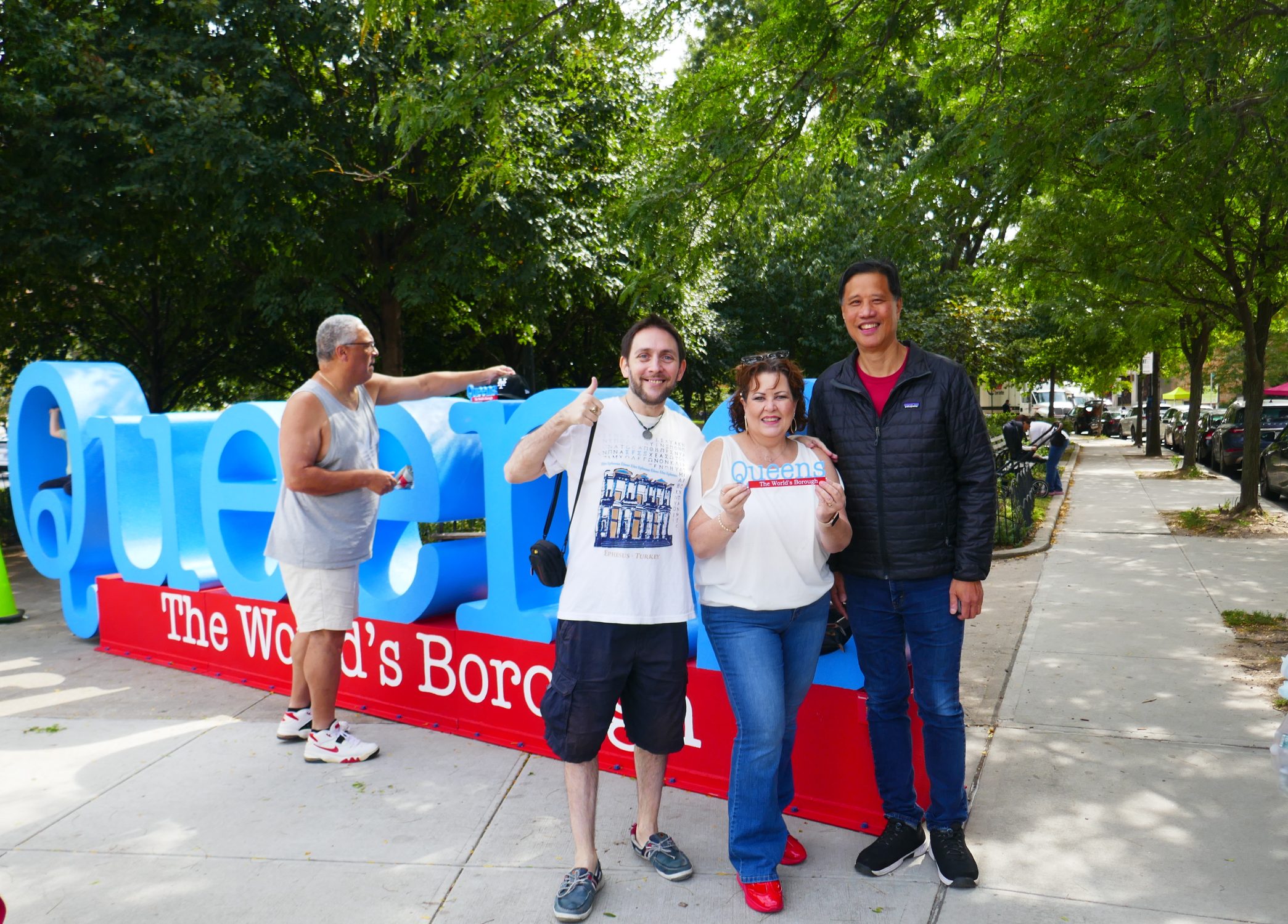 It was nearly a year ago that large 3D letters were delivered and drilled into the pavement of MacDonald Park on Queens Boulevard and Yellowstone Boulevard in Forest Hills. The prominent “Queens, The World’s Borough” sculpture has been standing proudly ever since, generating a life-like presence alongside monumental trees with its color scheme of the Queens flag. As residents from nearby and far observed the letters coming together, it became analogous to Queens’ harmonious diversity of ethnicities and cultures, where residents choose to unite by sharing ideas, dreams, history, food, and customs.